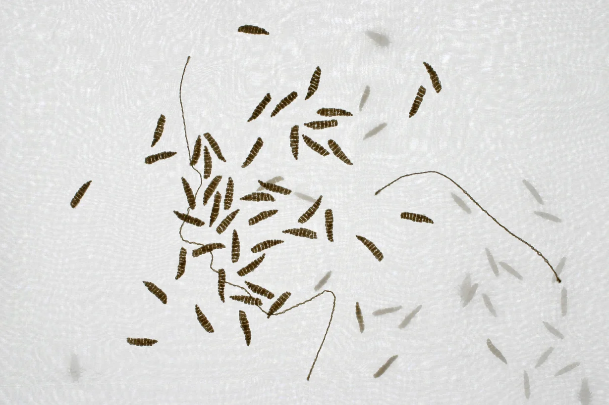 Three works which address the intimate relationship between the body and nature. Creatures infest or shed these garments, shrouds and skins.